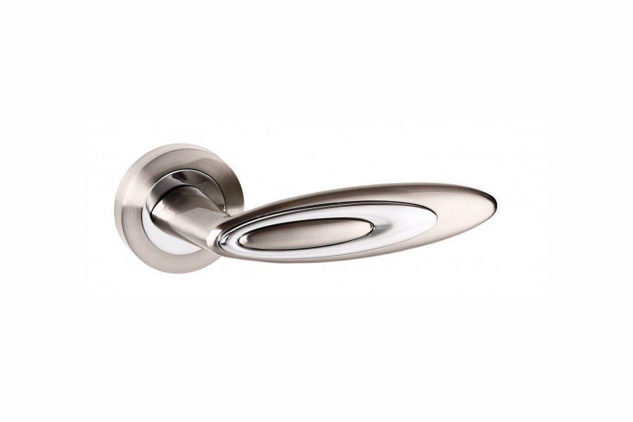 Atlantic Senza Pari Elisse Lever Door Handle on Round Rose - Satin Nickel/Polished Chrome