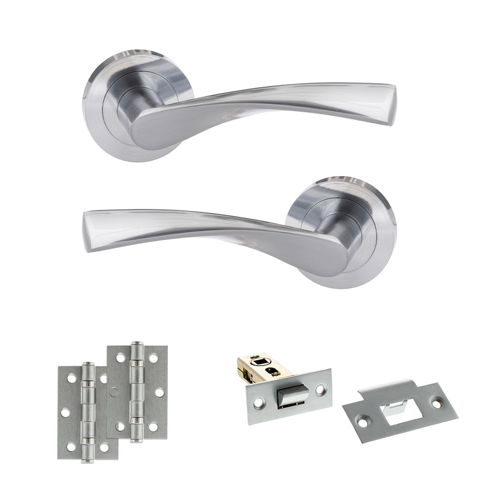 Eco Aqua Door Handle Pack (Latch Set - 2.5" Latch, 3" Hinges x2) - Satin Chrome