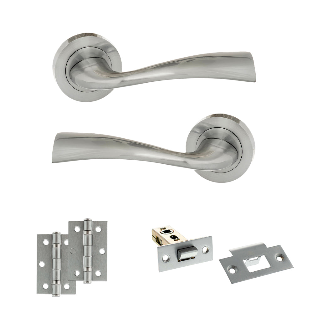 Eco Wave Door Handle Pack (Latch Set - 2.5" Latch, 3" Hinges x2) - Satin Chrome