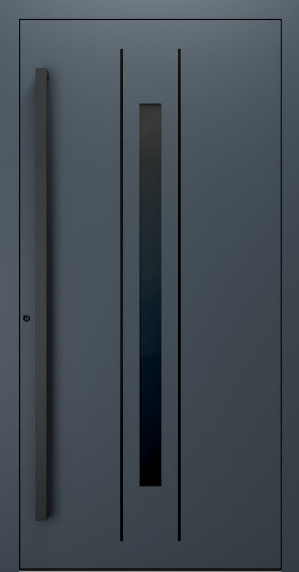 Finished in the popular Anthracite Grey RAL 7016, the door provides a sleek, modern appearance that enhances kerb appeal. Its deep grey tone complements contemporary, minimalist, and architectural designs, making it one of the most sought-after colours for modern aluminium entrance doors.